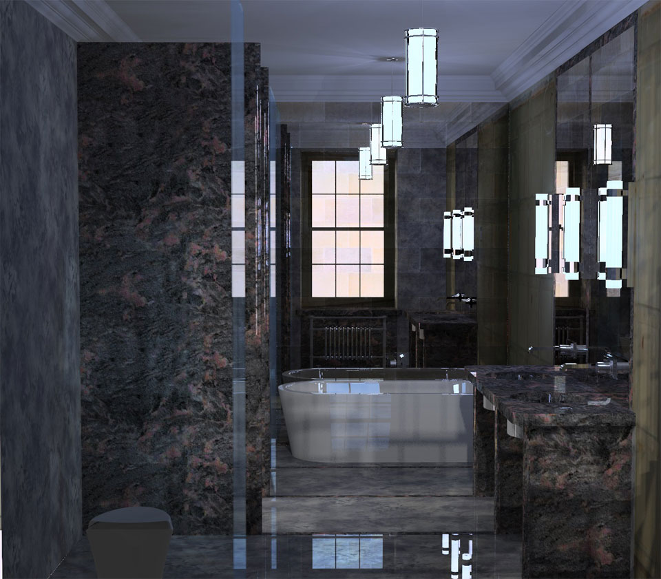 - This is a design for bathroom for a country house, for a space that retained fragmentary remains of reused early-17th century panelling.